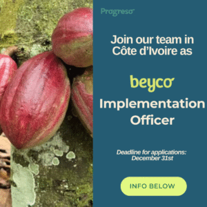 Progreso Foundation is expanding its team in Côte d’Ivoire with two new full-time positions: Project Manager and Project Officer. Both roles are central to our mission of supporting smallholder farmers and strengthening the sustainability of the cocoa sector.